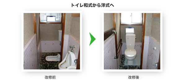 和式便器を洋式便器に取り替えや、既存の便器の位置や向きを変更する場合が一般的に想定される。 |